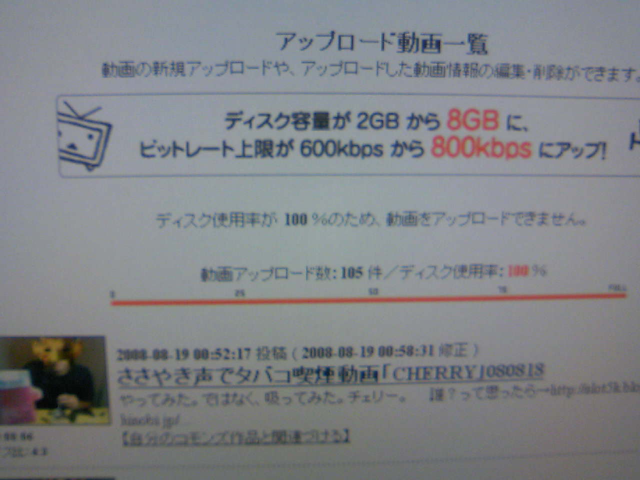 105動画目にてアカウントの動画アップ許容量100%です。